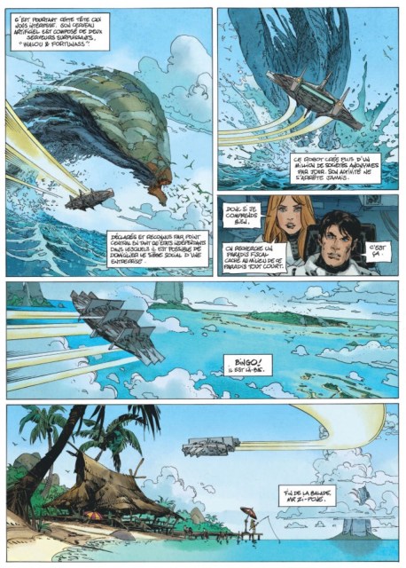 Lupano et Lauffray capturent à merveille cet univers parfois absurde, si futuriste et pourtant terriblement terre à terre, englué dans la bêtise de notre société consumériste. Si le trait de Lauffray (Long John Silver) est moins sombre qu’à son habitude, et moins gras que celui de Mézières, nos héros subissent ici une jouissive cure de jouvence hautement respectueuse. Sur un rythme qui n’est pas sans rappeler celui des Aventuriers de l’Arche perdue, cet album montagne russe est gorgé d’un humour qui fait mouche, alternant scènes intimistes et grandioses décors spatiaux, sans oublier l’inévitable touche écolo. Scénario et dessin se tirent la bourre question vivacité, et le tout se savoure avec délectation, jusqu’à l’inattendu twist final.