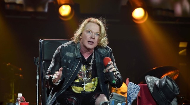 Contraint à la position assise, Axl Rose a assuré. Quoi qu’on pense du personnage dont le passé est certes loin d’être irréprochable, sa prestation aujourd’hui à Marseille ne souffre aucune critique. Il n’en a pas « trop fait », il s’est mis au service du groupe et a fait honneur à son répertoire, qu’il s’agisse de celui de Bon Scott (12 titres) ou de Brian Johnson (11 titres). On lui doit sans aucun doute le passage de la setlist à 23 titres, contre 20 à Paris l’année dernière, et le retour de plusieurs morceaux de l’ère Bon Scott. Bien qu’assis, il n’a eu de cesse de bouger sur son siège, de manifester un groove certain, d’accompagner les paroles des chansons de gestes opportuns. Alors bien sûr il a changé deux fois de chapeau et de bandana, et mis ses lunettes de soleil à deux reprises même s’il est permis de se demander s’il ne s’agissait pas simplement de lunettes de vue nécessaires pour lire les prompteurs sur les titres les plus récents avec lesquels il est moins familier… Son interprétation a été d’une grande justesse, et d’une grande clarté. Enfin des paroles intelligibles sur tout un show ! Malgré son attelle, il a tapé des pieds pendant plus de deux heures. Axl Rose, au service du groupe, l’égo dans la poche, donne indubitablement un coup de jeune à AC/DC. Mais ce qui impressionne le plus, c’est le magnétisme qui se dégage de sa personne. Même assis. Alors que Brian s’est souvent caché sous la visière de sa casquette, Axl regarde son public droit dans les yeux et tend son visage vers la foule. Il s’offre au public. Cet homme irradie en permanence. Après l’avoir entendu chanter dans AC/DC pendant plus de 2 heures, la décision de l’adjoindre au groupe paraît d’une telle logique. Avec Axl au micro, le groupe joue en sécurité : Angus n’a ni à le chaperonner ni à garder l’oeil sur lui. Ce n’est que leur troisième show ensemble, et la paire fonctionne sans accroc. Axl n’a pas peur de se retrouver devant 60,000 personnes. Il s’offre à elles. Et elles lui mangent dans la main. Et pendant ce temps Angus fait son show sans se soucier de quoi que ce soit. Deux parfaits contrepoints. Tout est neuf mais paraît tellement rodé. Plus encore, Axl est une STAR tout autant qu