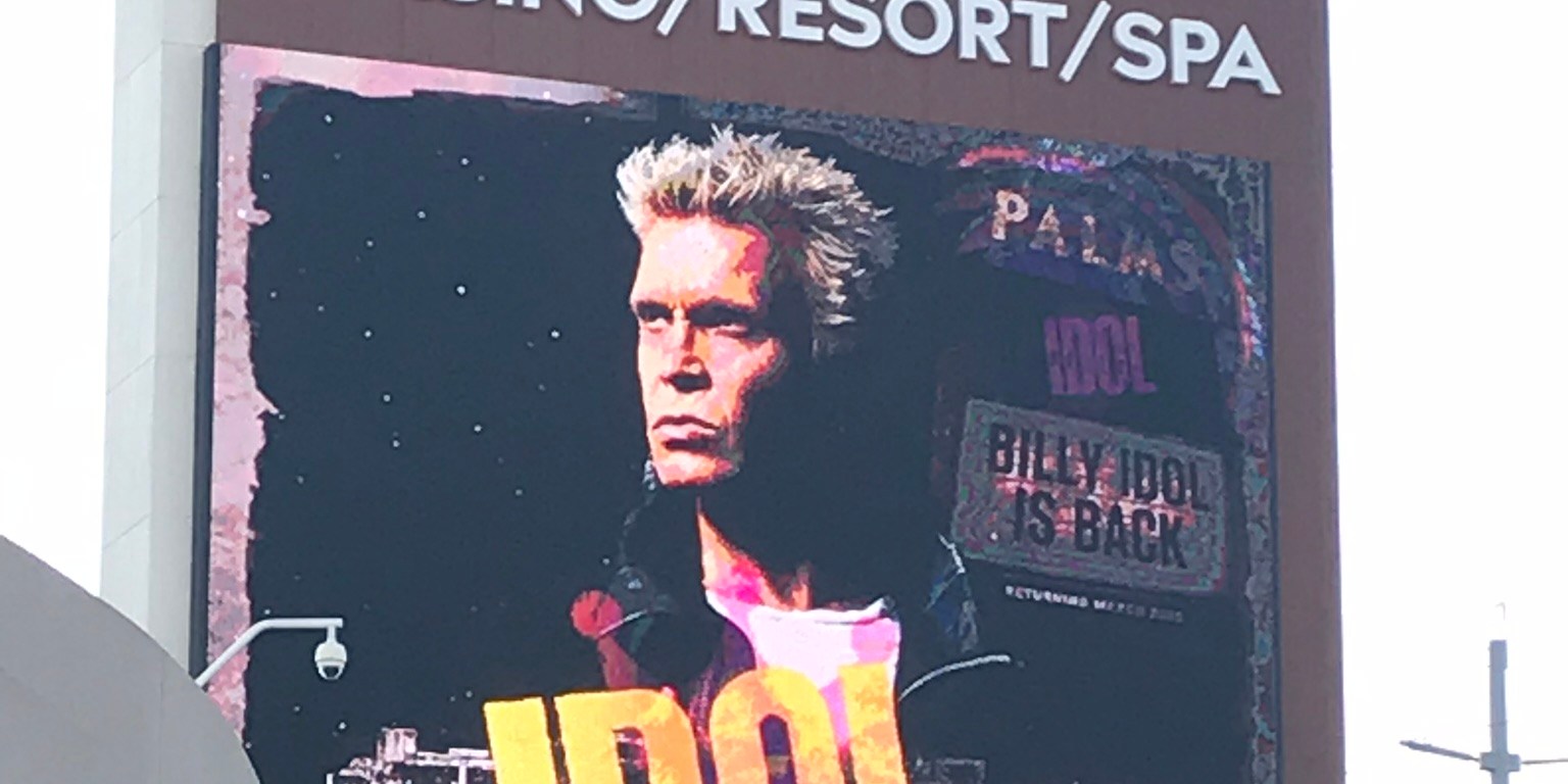 Billy Idol. Billy Idol…. Hmmm… dans les années 80, j’avais une quinzaine d’années. Billy triomphait avec ses tubes et sa moue, après avoir quitté Generation X. Avec Steve Stevens à ses côtés, caution rock et guitaristique. A l’époque j’écoutais Maiden et Metallica. À mille lieux de Billy. Flesh for fantasy quand j’étais Master of Muppets. Peut-être est-on con quand on est jeune ? Ou simplement sectaire ? Ou peut-être doit-on faire des choix pour se construire ? Peu importe, c’était tout simplement à l’opposé de mon trip. Et puis j’ai pris de l’expérience. Oui, bon, ça va ! J’ai vieilli… ok ! On ne va pas revenir là-dessus. Aujourd’hui, je ne crache plus sur un « White wedding » ni un « Dancing with myself ». L’année dernière, un couple d’amis proches m’a proposé (et à ma femme aussi) de l’accompagner à Vegas, pour son mariage. Le marié avait été témoin au mien. Comment refuser cette aventure unique ? Et en plus, cela tombait au moment où Billy serait en résidence au Palms. Alors, nous les avons suivis. Témoins un an plus tard de leur mariage dans la weddding chapel où Bon Jovi s’est marié, et le lendemain rencontre et concert avec Billy Idol et Steve Stevens. L’aventure d’une vie ? Non, mais une opportunité unique, assurément. Et des moments inoubliables. Pour revenir à Billy… même si c’est aujourd’hui monsieur botox et bistouri, la rencontre brève avec la légende et son guitariste fut simple et friendly. Serrage de pognes et quelques mots, sans filtres, et l’impression bizarre d’avoir rencontré un nouveau modèle de Terminator. Ce qui a bien fait rire notre chauffeur Uber qui nous ramena du Palms au Planet Hollywood en pleine tempête de sable. Ah le désert du Nevada en octobre ! Alors ce concert ? Je n’étais pas allé voir Billy Idol quand il s’est produit au Hellfest il y a quelques années. Mais j’ai vraiment pris du plaisir à le voir dans cette salle moyenne de Vegas. Pas le concert du siècle, ni celui de l’année d’ailleurs, mais un lieu et une ambiance uniques, avec un groupe sans fard qui se donne en toute simplicité, un guitariste qui fait le show en défendant efficacement son statut, et un Billy qui malgré l’âge fait lui aussi le show, loquace, en appuyant sur tous les boutons qui émoustillent ses Die-Hard fans. Un moment gravement rock et convivial, une succession de tubes, qui effacent toutes les approximations du live et de l’âge. Billy Idol dans une petite salle au milieu du désert, bordel !!! Même si à l’américaine, certes… il paraît que dans les casinos, ils insufflent de l’oxygène pour rendre les joueurs euphoriques. Je ne sais pas si les gaz se propagent jusque dans les salles de concert. J’espère que non ! Mais je m’en fous en fait. L’important, c’est d’avoir passé une bonne soirée. Ce fut le cas ! (Même si nous avons mal mangé et n’avons pas trouvé le moyen de boire une seule goutte d’alcool ! Sin city mon c** !!!)