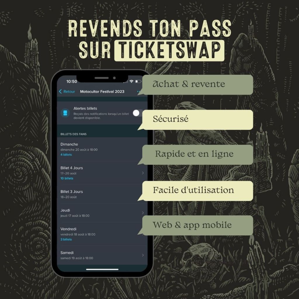 La billetterie est accessible en ligne sur vos sites habituels, ainsi que sur le site du festival motocultor-festival.com ! Une billetterie sera également ouverte sur place dans la limite des places restant disponibles. N’hésitez pas en outre à consulter les places en revente sur ticketswap.