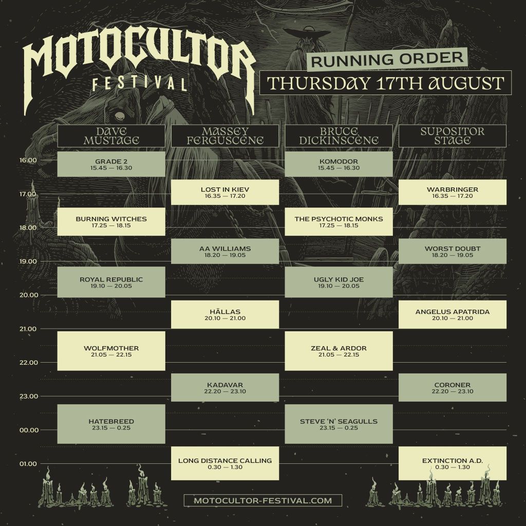Cette année le MOTOCULTOR a lancé sa grande migration pour s’installer en plein centre de la Bretagne, sur des terres rodées aux grands rassemblements musicaux, à CARHAIX-PLOUGUER (29). Les métalleux ont répondu présents sur les sites de billetterie et l’événement, s’il n’est pas encore tout à fait sold-out, n’en sera pas bien loin à son ouverture. Il reste encore quelques places à la journée, alors ne tardez pas si le Finistère au cœur du mois d’août vous tente, vous serez conquis ! Le festival se tient sur quatre jours, du 17 au 20 août 2023, et propose pas moins de 110 groupes sur quatre scènes. Voici un récapitulatif des communications des organisateurs, afin de mieux préparer votre séjour !